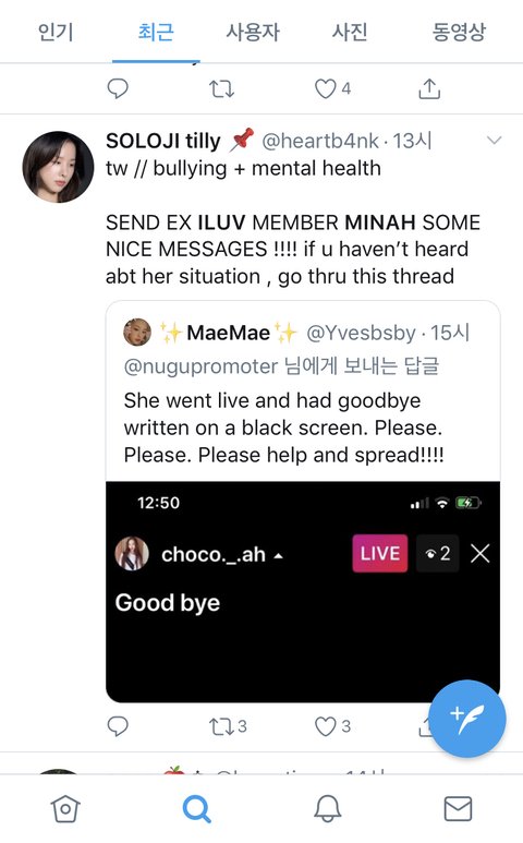 +현재는 어제 자살 시도이후로 인사글 남기고 쉬겠다고 올린 상태고 인스타 에러가 나서 유튭에 녹음해서 올림 https://youtu.be/xVOvYT4IPiA