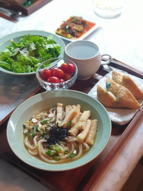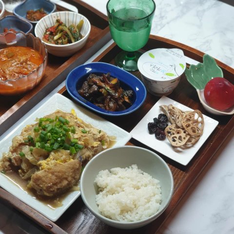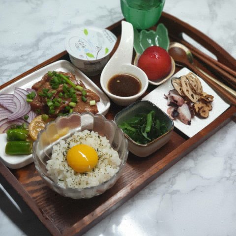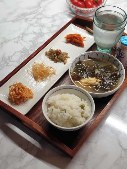 식판은싫다시니..트레이에 올려줍니다..