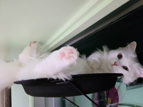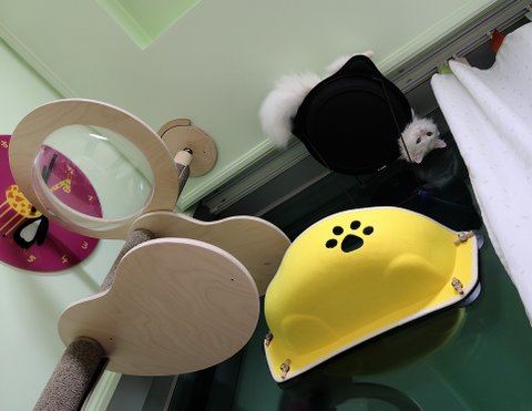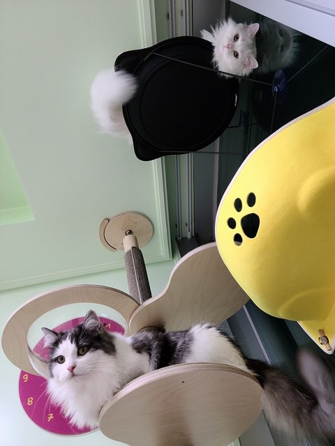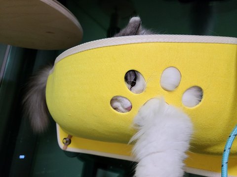 잘려고 침대 옆 캣 타워에 올라갔지만...넘 궁금해서 잘 수가 없어요...계속 아래가 궁금해서....내려다 봐요.