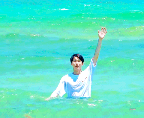 내가 물 무서워하니까 여긴 별로 안깊다며 들어와도 된다고 손흔드는 김도영