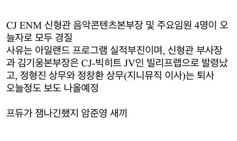 아이랜드 망해서 CJ 부사장 임원진 4명 짤렸대 ㄷ ㄷ