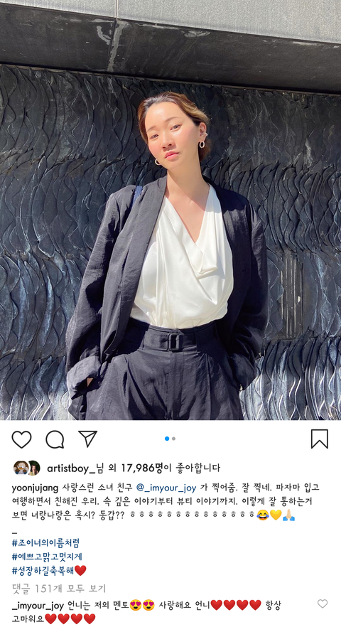 장윤주만난뒤로 조이가 자신감도 넘치고 더 과감해진것같아서 너무 감사함ㅠㅠ 우정영원했음좋겠다