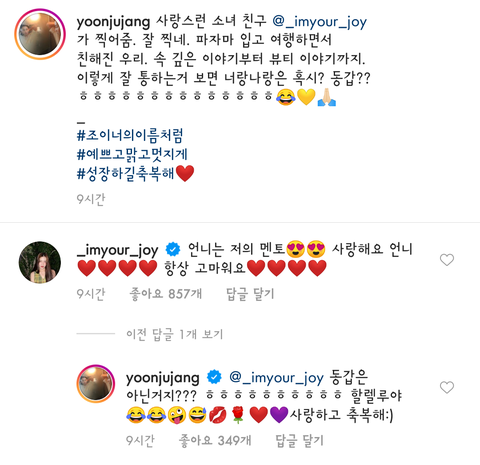 와 둘다 말 엄청 예쁘게한다.....조이 첫째 언니라 언니들 대하는거 어려워 해서 친한 언니 많이 없다고 했는데 ㅠㅠㅠ진짜 좋고 잘 맞는 언니 만나서 다행이다