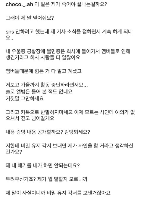 +지금은 지워졌는데 멤버 남자친구가 댓글을 달아서 캡쳐한 사람이 있어 소속사측 기사에 반박하는 글을 올렸어