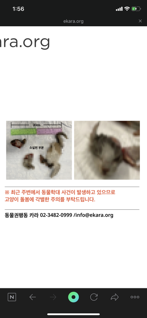 고양이를 토막 or 칼로 난도질하고 시체를 버리고