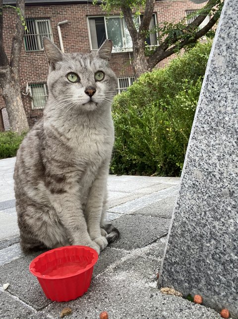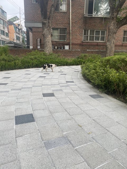 송파동 방이시장 공원에서 저희강아지 산책중에 집고양이발견했어요.