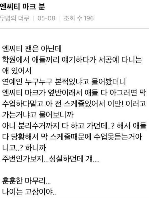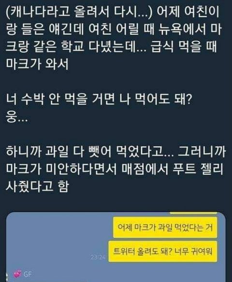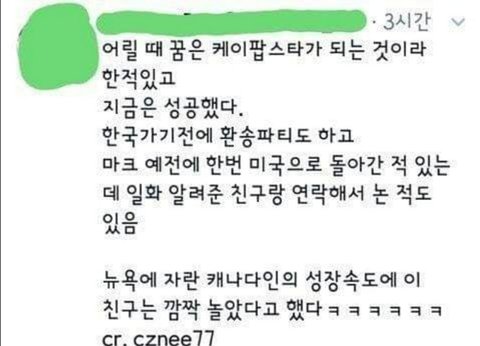 +데뷔초에 언주중 동창분이 판에 썰풀었는 거(4년전이라 기억 잘 안 나는데) 얼굴 진짜 작았고 너무 말라서 교복이 허벌 바지 였대ㅋㅋㅋ 그리고 다른 과목 시간에 계속 졸았는데 영어 시간에 눈 말똥말똥하게 수업 열심히 들었대