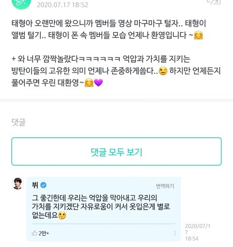 오늘 뜬 방탄 뮤비 뷔정국 얼굴수준