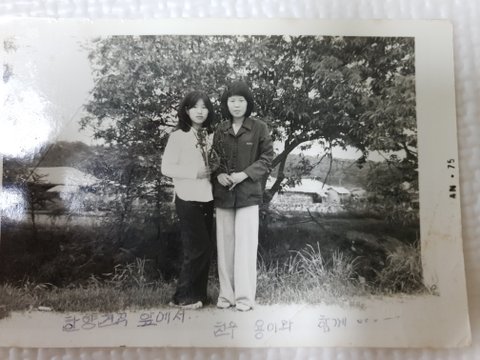 엄마 유품 정리하다가 사진 한장을 발견했는데 사진 뒷면을 보니 같이 찍은 친구분께 편지를 써놨더라구요