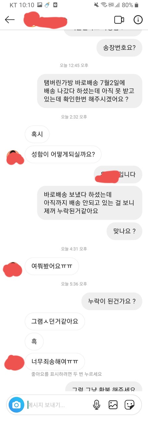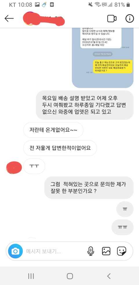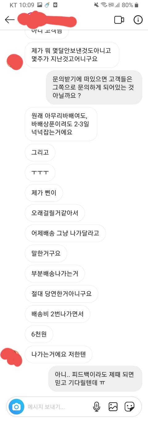 속이 터지는 것 같아서 배송 언제되냐고 물어봄.