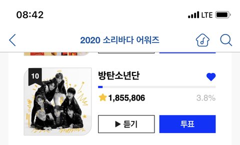 10위됨 ㅠㅠㅠㅠㅠㅠㅠㅠㅠ 소리바.다 가입해서 하루에 별 다섯개씩이라도 주워서 매일 다섯표씩 해주라 ㅠㅠㅠ 본상 10위안에 들어가야해 무조건