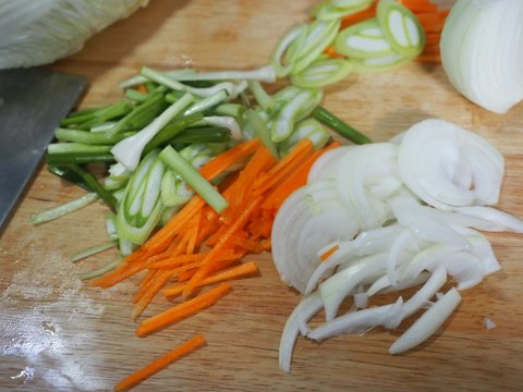 그 사이 겉절이용 쪽파 당근 파 양파 잘라서 준비하거