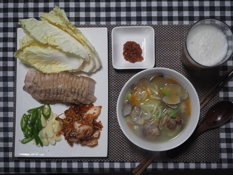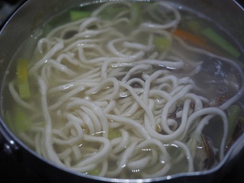 해산물다시 팩 하나 넣고 애호박 양파 파 당근넣고 끓으면 바지락 넣고 다시 또 끓으면 면 넣고 소금 미원 다진마늘로 간해주고