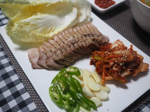 김치에 집중하고 있었더니 어느새 수육이 완성되었습니다.