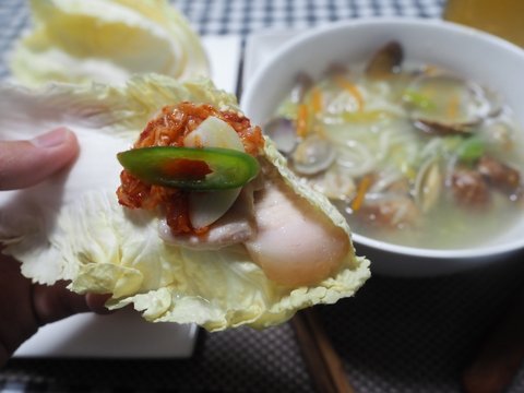 한잔 적시고 만들어둔 쌈을 입에 넣어주면 크...