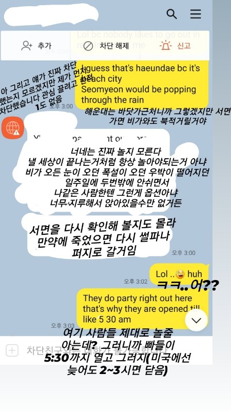 지금도 친구 없어서 내 뒤에서 내 친구들한테 연락하고 공작하고 응 나는 진짜 친구들 있어 술을 자주 안마셔서 그렇지 많아 너보단