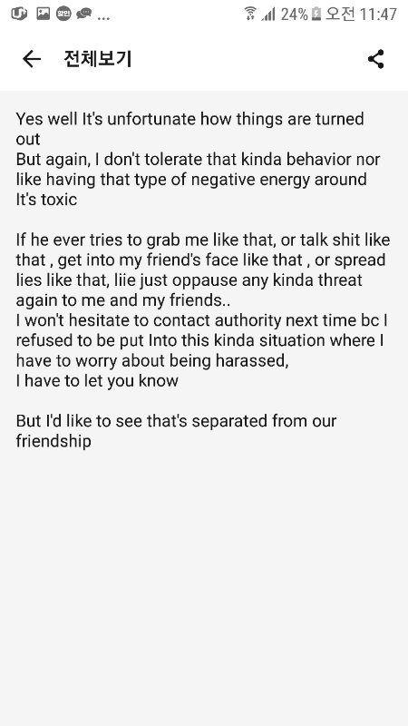 다행히도 카톡 전문이 있었던 저는 어차피 이미 친구 관계도 맘으로 끝냈었지만 반론할건 하고 내 청렴함을 지키고 싶었기에 전문을 보냈지만 물론