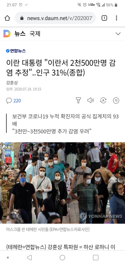 이란 코로나 감염자 2500만명이래...