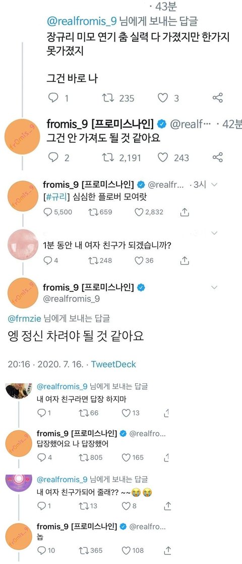뭔 남돌이 이랬으면 ㅇㅈㄹ이야 ㅋㅋㅋㅋ 느그 같으면 파오후 개저씨들이 사귀자 하면 좋아용~ 하겠냐 아직도 여돌을 무슨 시키는 거 다 하는 인형으로 보나 ㅋㅋ 뭐만 하면 여돌 패네 지겹지도 않나 개한심하다 진짜... 재미로 올린 글에 개정색 빨고 악플 다는 거 진짜 개찐따 같음