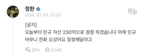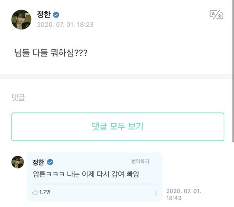 ➰민규 어머니께 실제로 정한이한테 연락 하셨다고 함(물론 장난으로)➰