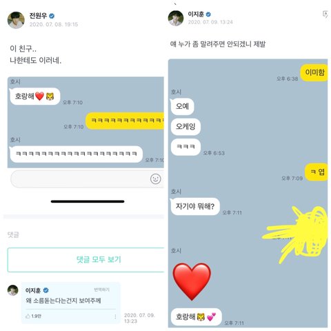 ➰여기저기 사랑한다고 하고 다니는 멤버와 자기 답장 지워서 올린 글쓰니. 팬들은 뭐라고 했을지 유추 하고 있음➰