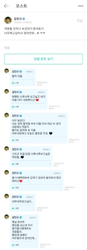 오늘 새벽 4시,, 세븐틴 위버스에 갑자기 찾아온 민규...