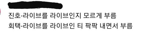 -샤이니: 우리 메보는 베이스 기타치다가 얼굴로 캐스팅됐는데 음역대 엄청 넓고 팔굽혀펴기 하면서도 라이브 흔들림 없고 음색도 이쁘고 콘서트에서 8마디동안 고음 내지르기도 한당. 아직도 난 콘서트갔을때가 안잊혀져 고음이 아무리 기다려도 안끝나. (댓글에 링크있음) 이건 발음향 뚫는 우리 메보..보고싶다 작사작곡해서 타가수들도 많이 주고 책도쓰는 능력잔데 말이지 카주 연주도 잘하구ㅎㅅㅎ