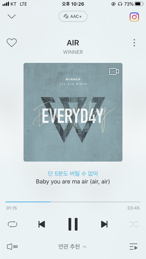 플레이리스트 바꾸고 싶어서 !!! 나는 위너의 AIR 진짜 등교할때 들으면 뭔가 청량 시원해지는 느낌