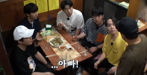 멤버들이 아까 쓰~윽 들어오시던 아버님 보고 든 생각들 말하는데