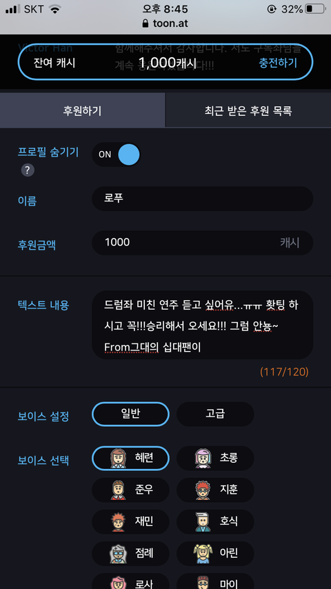 이거는 후원하고 남은 잔액