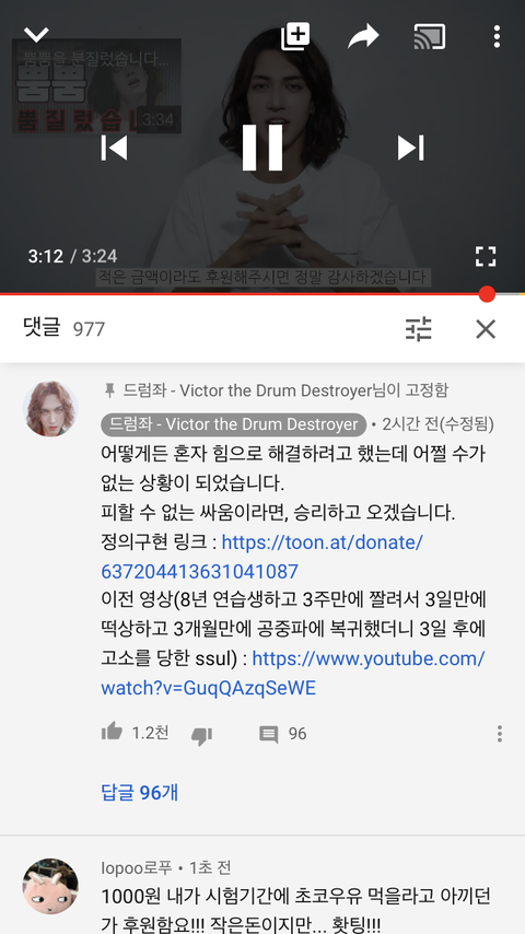 안녕 원래 보기만 했는데 사연이 넘나 안쓰러워서 글 남겨...ㅠㅠ 드럼좌 전소속사한테 고소 당한거 다들 알아?? 이 재판에서 진다면 드럼좌 아마 오랜시간동안 못 볼거야...