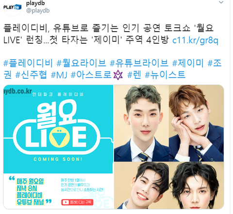 27일 월요일 저녁 8시 유튜브 플레이디비 채널에서 방송되나봐ㅋ