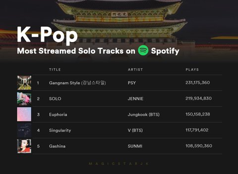 정국이가 남돌 최초로 스포티파이 1억 오천만 스트리밍 달성한 건 알지? 얼마나 정병 올지 이해해