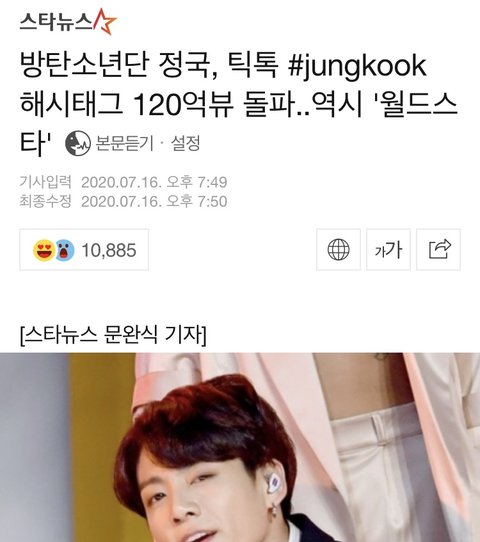 틱톡에서 전세계 아티스트 중에서 유일하게 해시태그 검색량 120억뷰 돌파한 아이돌이 누구냐면 응 그래 정국이야 얼마나 정병 올지 이해해