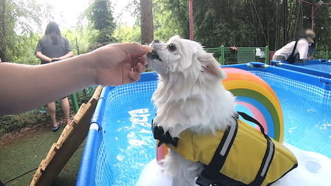 튜브위에서 간식도 먹고