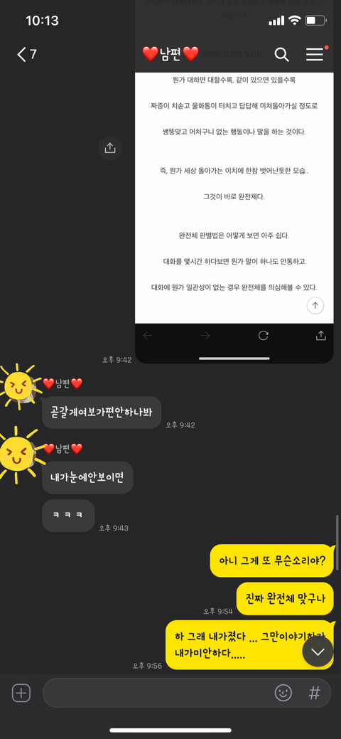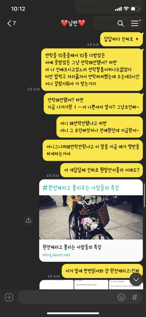 남편 : 나는 떳떳해 연락을안받은것도 아니고 전화해서 바로받았잖아