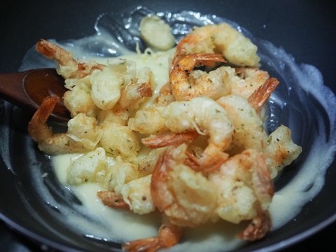 그 맛있는 튀김에 새우를 더해 크림새우를 만들어봅니다.