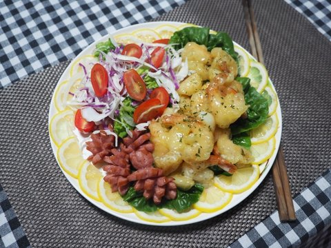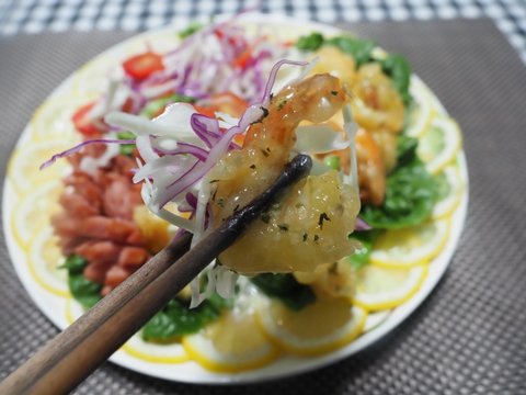 재료는 새우.