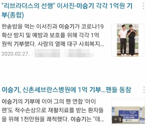 데뷔 이후 꾸준히 이어오는 기부와 봉사.
