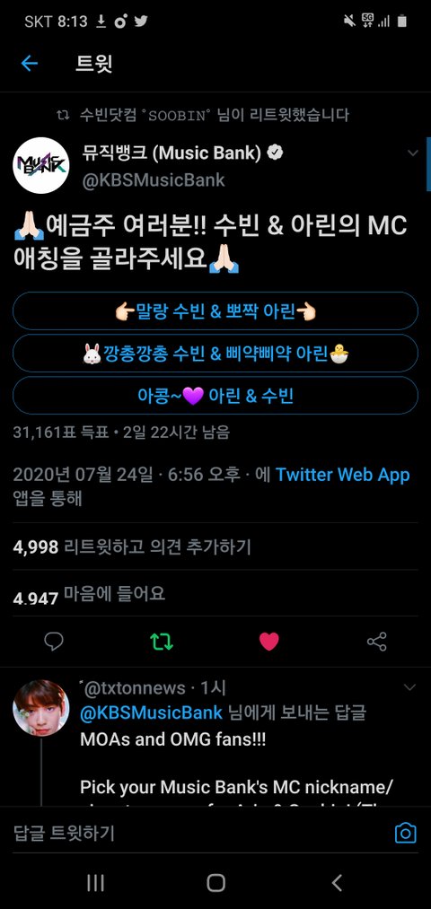 뮤뱅짹봤어?ㅋㅋㄱㅣㄱㅋ기ㅣㅣ/투표 아콩임?
