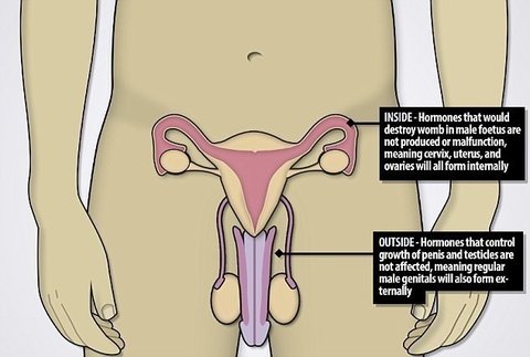 즉 생식기는 남성의 생식기+내부 구조는 난소와 자궁