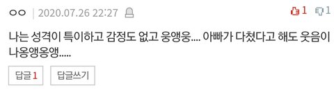 또 어떤 날은 엄마가 내 앞에서 우는데 또 웃음이 나려던걸 임막고 참았어.