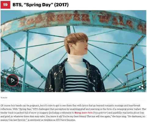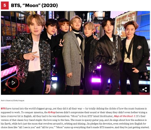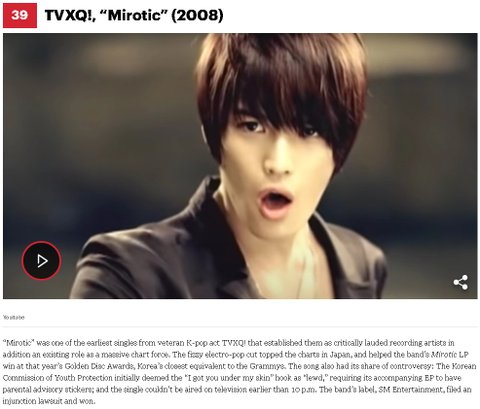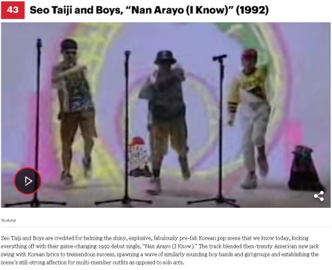 미국 롤링스톤지가 역대 보이밴드 노래 75개를 선정했는데 한국노래도 다수 있네