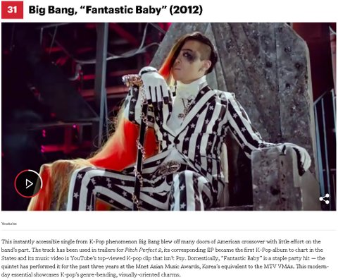 선정 어떻게 했는지 모르지만 미국 음악대중지가 뽑을 정도면 KPOP 위상이 높다는 반증이라 신기하고 모두 들어본 노래라 감동임 축하해!!