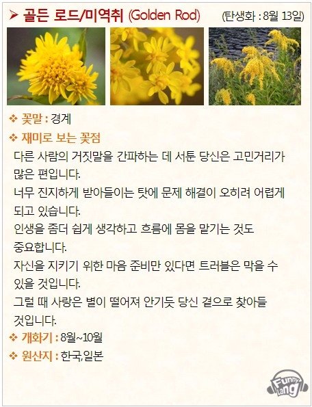 +혹시나 검색해보니 8월13일 탄생화가 골든 로드야!