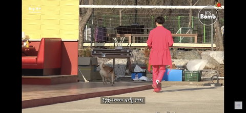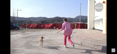 강아지가 석진이를 산책시키고