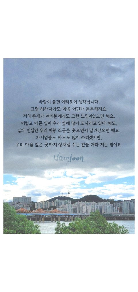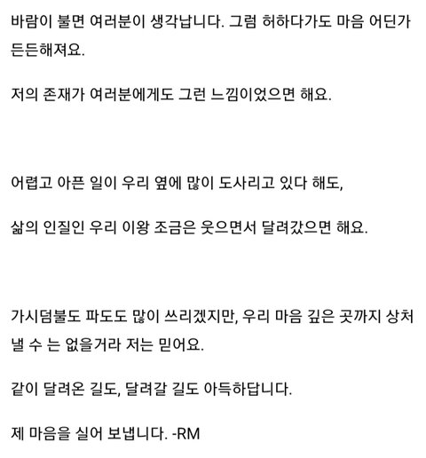 남준이가 전해주었던 편지같은? 말들 찾아보고