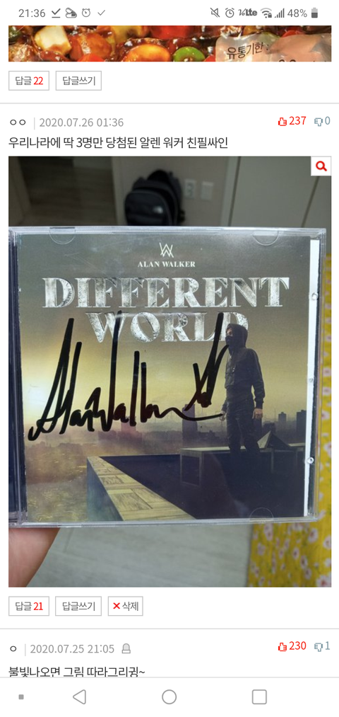 작년에 소니뮤직 코리아에서 알렌워커 친필싸인 이벤트 해서 3명 당첨이였는데 그중 한명이 나임.