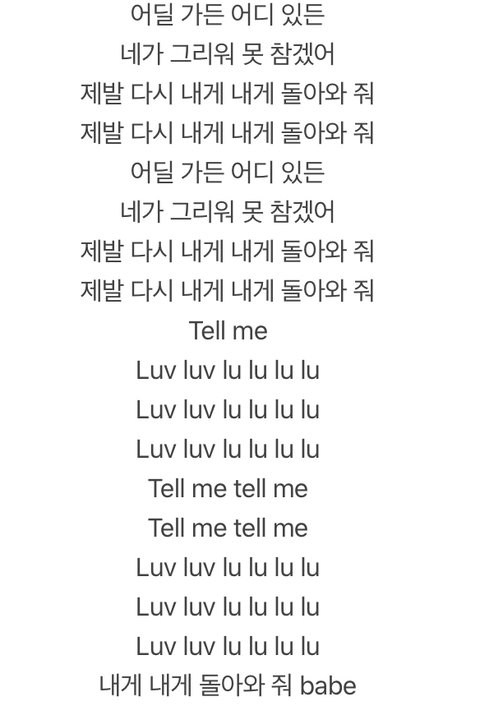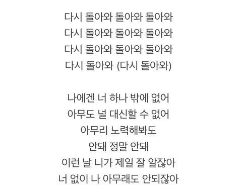 헤어졌지만 너를 잊지 못하니 다시 돌아와. 나한테 사랑한다고 말해줘.