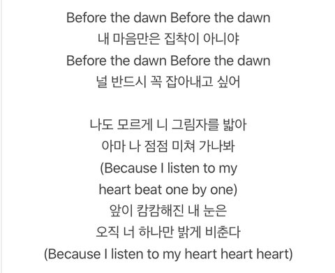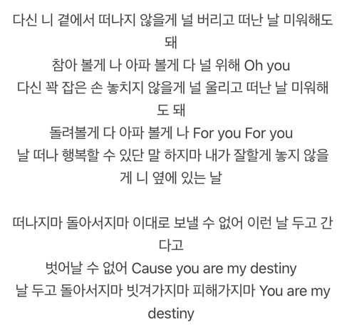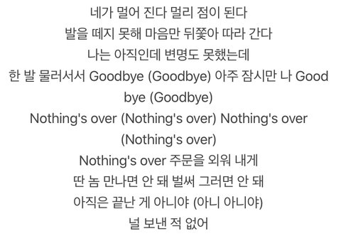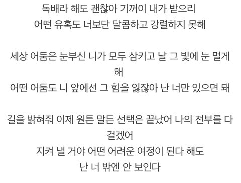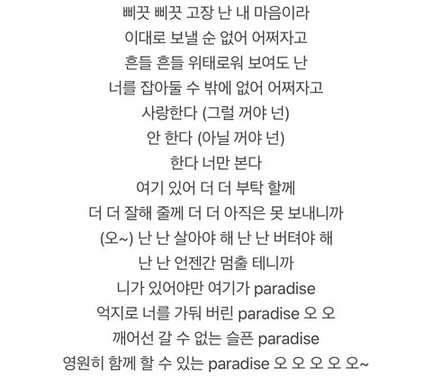비록 내 마음이 지금 이상하지만 너가 있어야만 파라다이스니까 널 보내지 않을거야.
